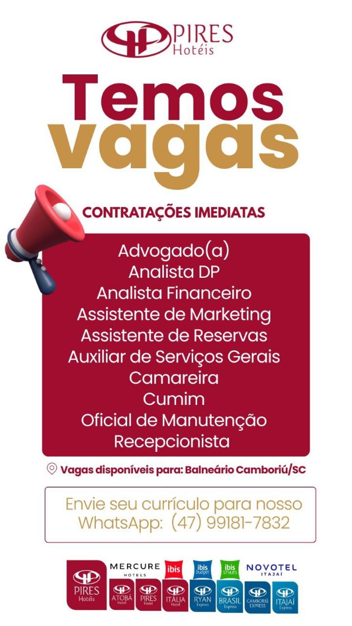 📢TEMOS VAGAS - REDE DE HOTÉIS PIRES