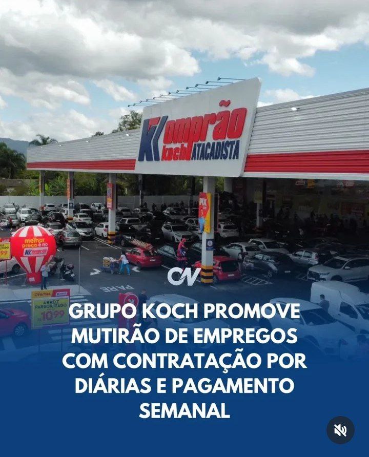 Grupo Koch promove mutirão de empregos com contratação por diárias e pagamento semanal